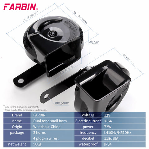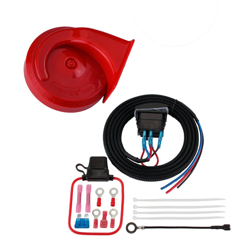 [Kit includes] : This speaker has complete accessories, including 510 Hz High tone horn,410 Hz Low tone horn,relay, wire harness,button switch,fuse,nut, bracket, and instructions, It is very convenient to install it by yourself .