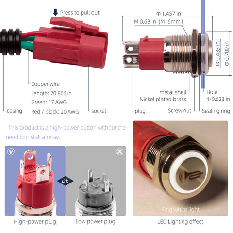 Easy to install and use : The Button switch surface is engraved with horn logo and LED lamp, so you can easily find it when driving at night.Button snaps into a 5/8 " diameter hole,support short press and long press.All the cables are long enough of six feet,and even if the horn is installed anywhere in the car, it can be easily connected.and the whole installation process is very fast.