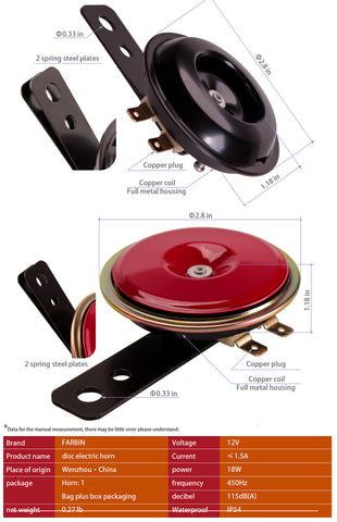 High quality horn : Black / Red-coated manganese steel horn body, the integrated design is more waterproof,Metal terminal design, better conductivity, more corrosion resistance and longer service life. The sound is bright, and the circular design enhances the sound warning effect.Electrical wiring and protective plastic tubing are durable and provided to enable it to be securely connected to the terminal of the battery, keeping the wires clean.