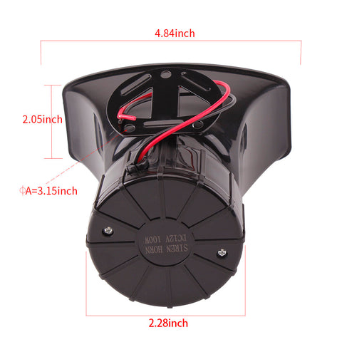 APPLY TO : Power: 100W; Voltage: DC 12V; car alarm horn emergency sound amplifier suitable for any 12V vehicle.